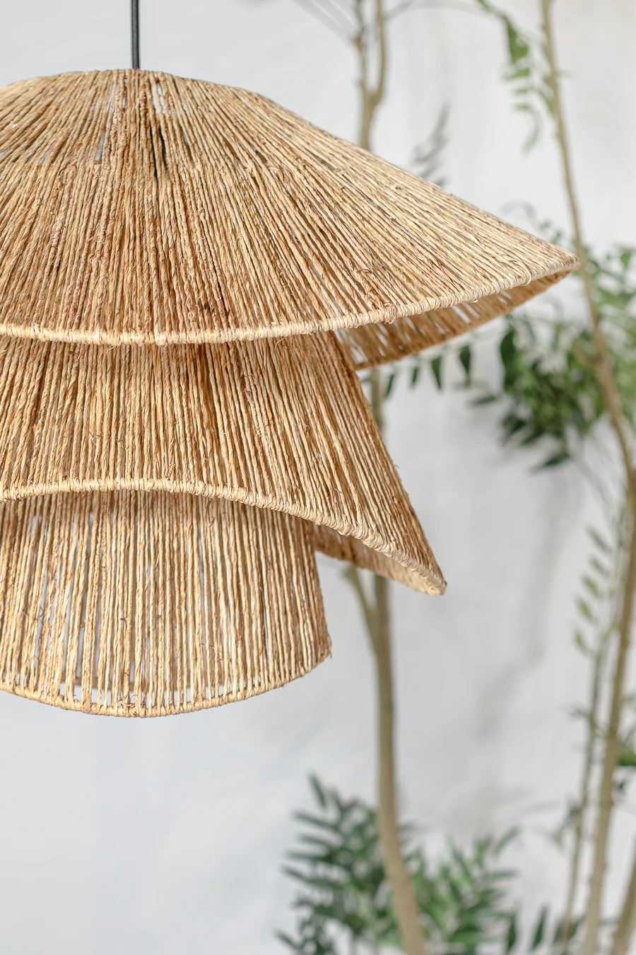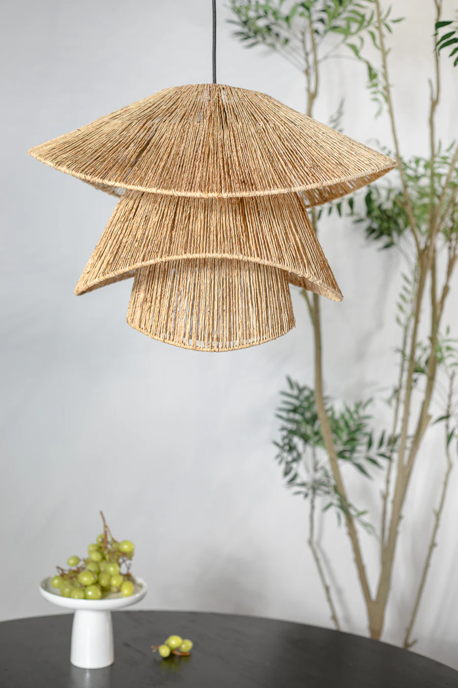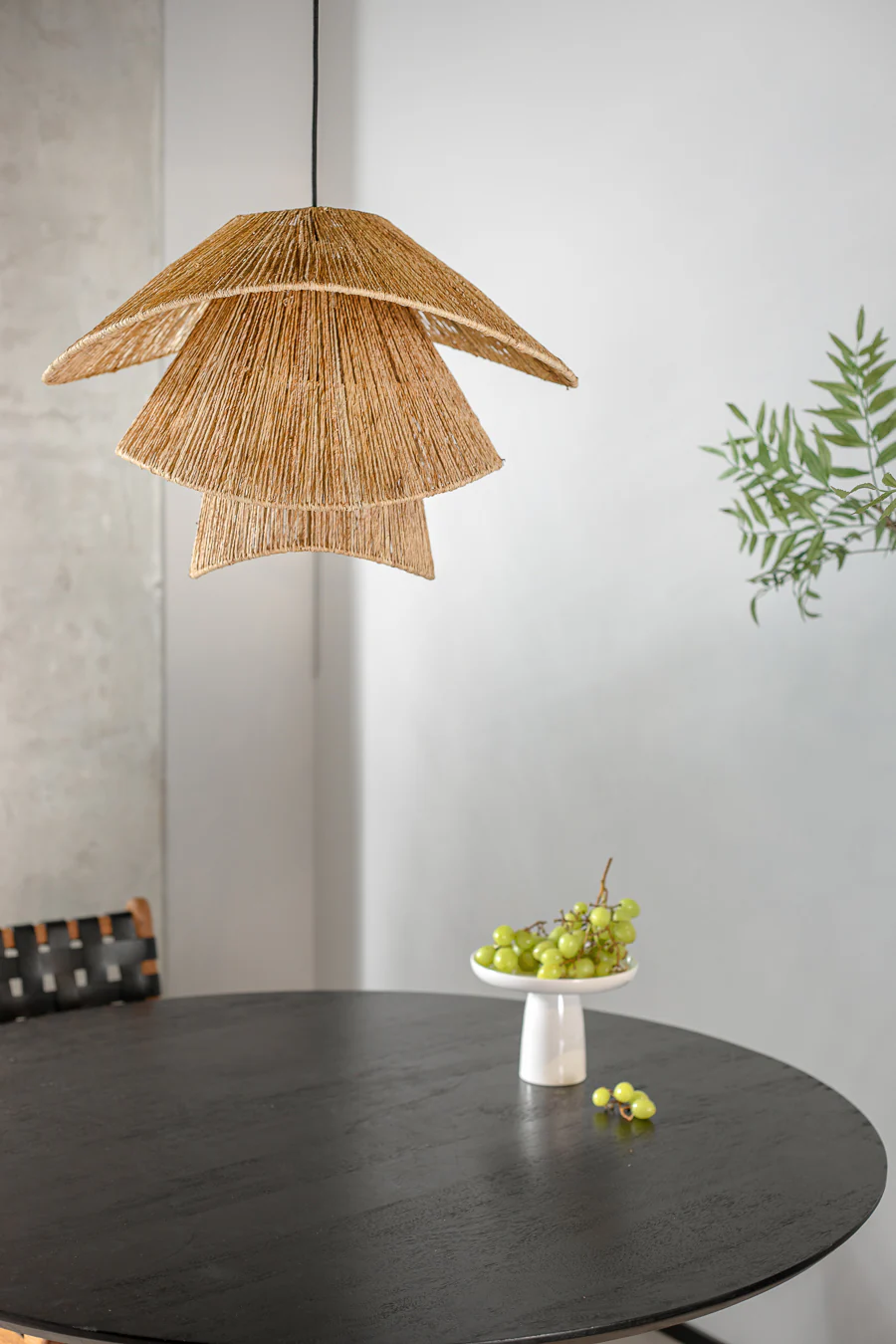 מנורה ריזורט בגוון טבעי. מנורת תלייה מעוצבת אהיל מסולסל בקו מנימליסטי.