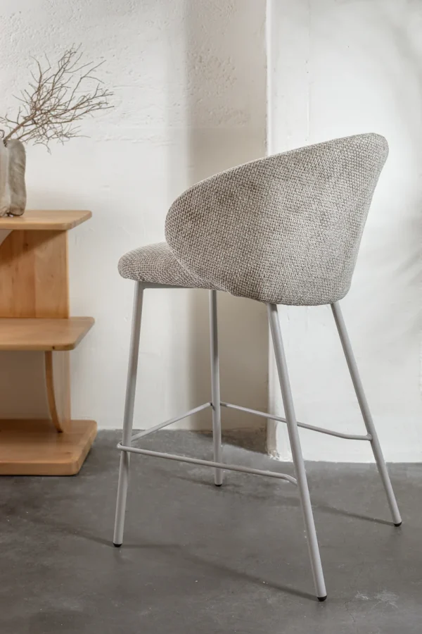 כיסא בר אליוט ייחודי בגוון אפור. כיסא ישיבה גבוה, מורכב משענת ותושב מקשה אחת בקו רך.