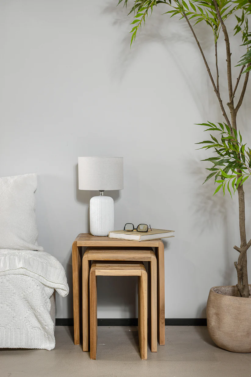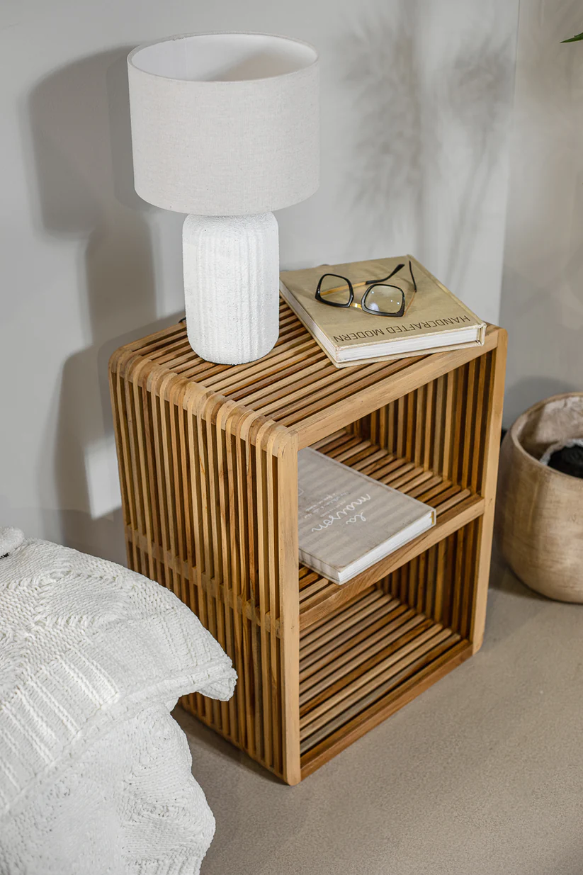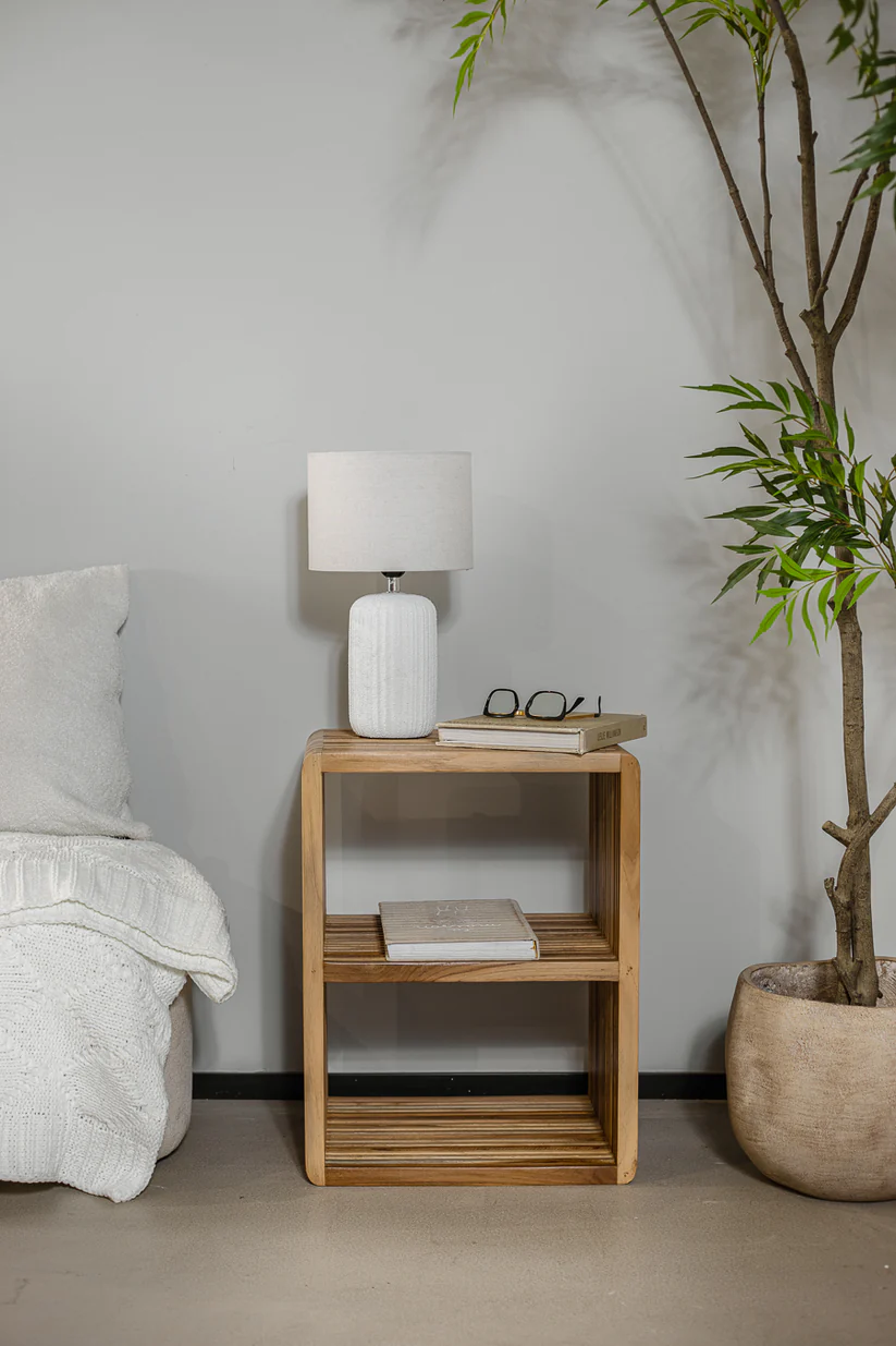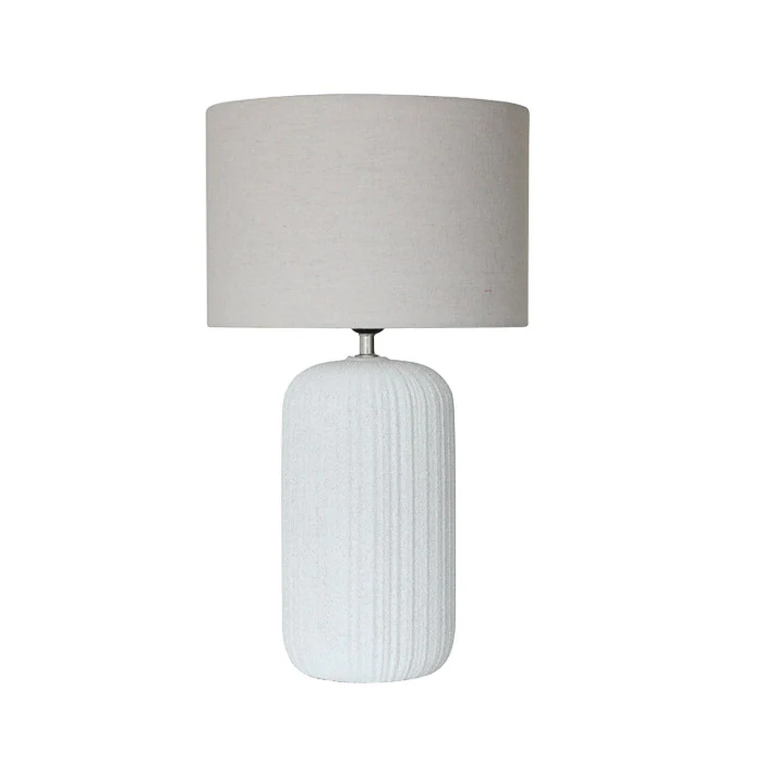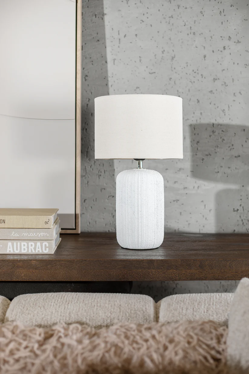 מנורת שולחן אדיסון שיק בצבע לבן. גוף תאורה מחורץ לאורכו בשילוב אהיל עגול, המשלים לנראות FINE. מנורה מרשימה לשילוב על דסק הספרייה, פינת הקריאה בחלל המרכזי או חדר העבודה.