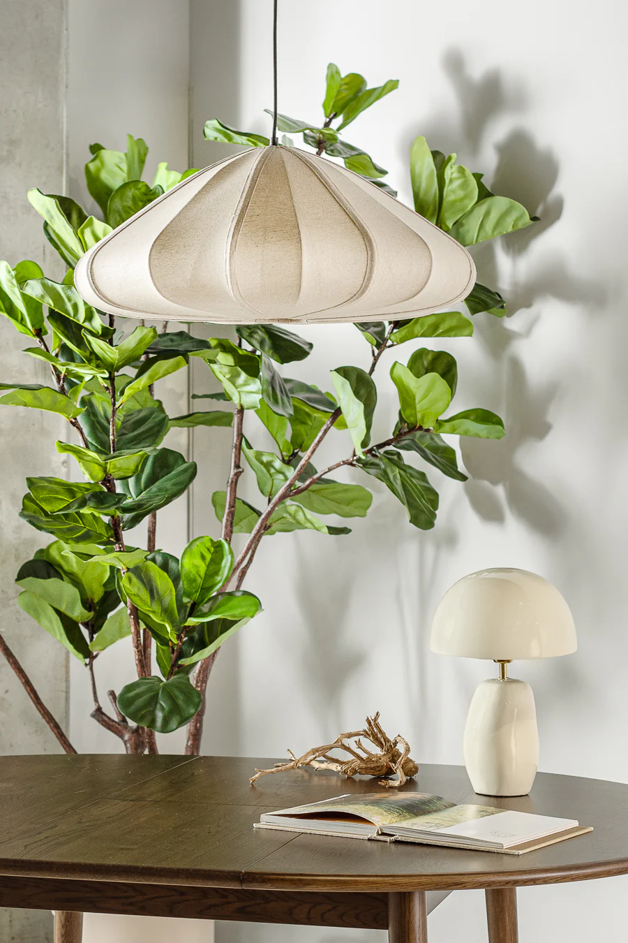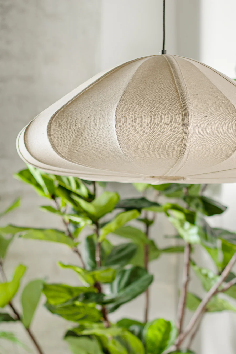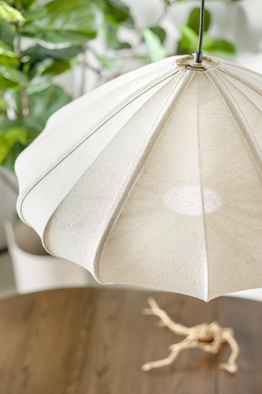מנורת תלייה פאבריקהבגוון נטוראל. גוף תאורה אותנטי בעיצוב אהיל קלאסי. מנורת תלייה לאוהבי איבזור עדין בניראות אותנטית. *גוף התאורה לא כולל נורה.