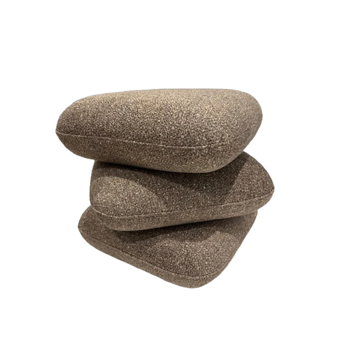 סטול איחסון לוקה בגוון בהיר. הדום אובאלי מרופד בד טוויד שובה, הנישא על רגלי מתכת שחורות.